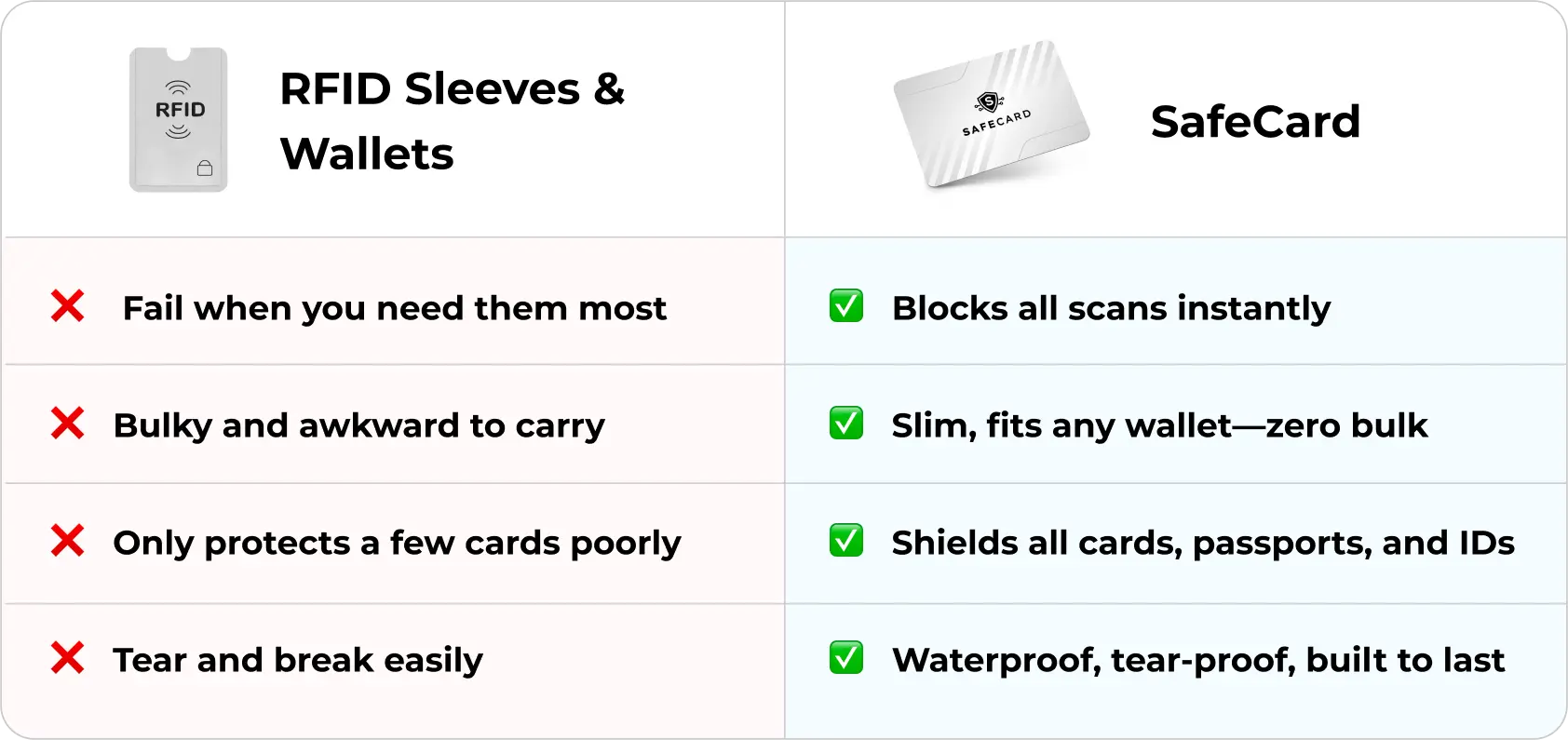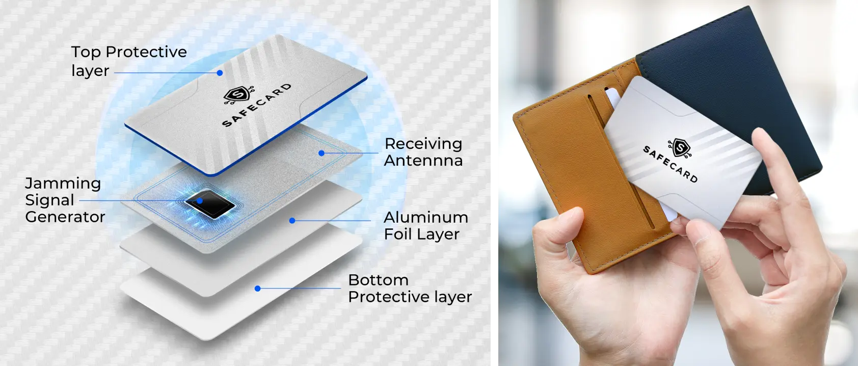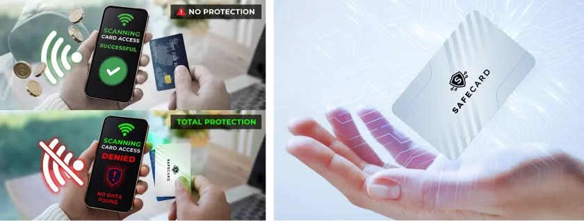 Say hello to SafeCard, a sleek, invisible RFID shield that blocks scanners before they can access your data.